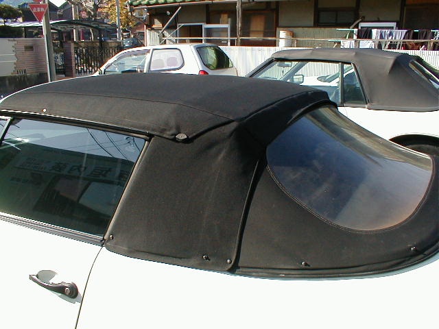 幌の破れ部分の一部取替えです。一度中の骨組みを何処かで修理をされているみたい