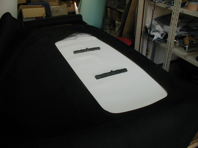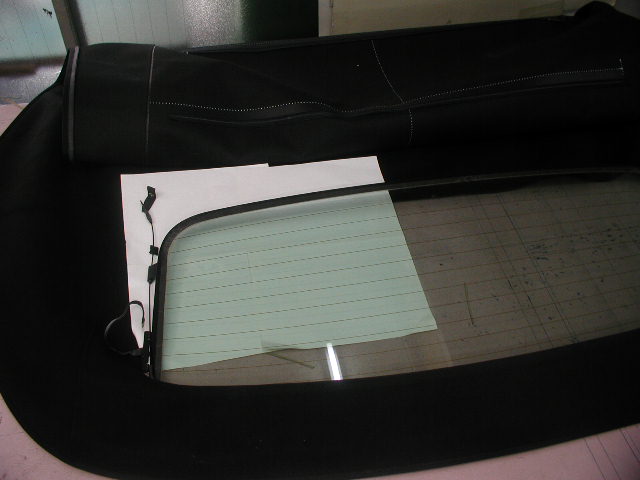 今回ガラスまわりのミシン目がダブルになっています、幌地が分離