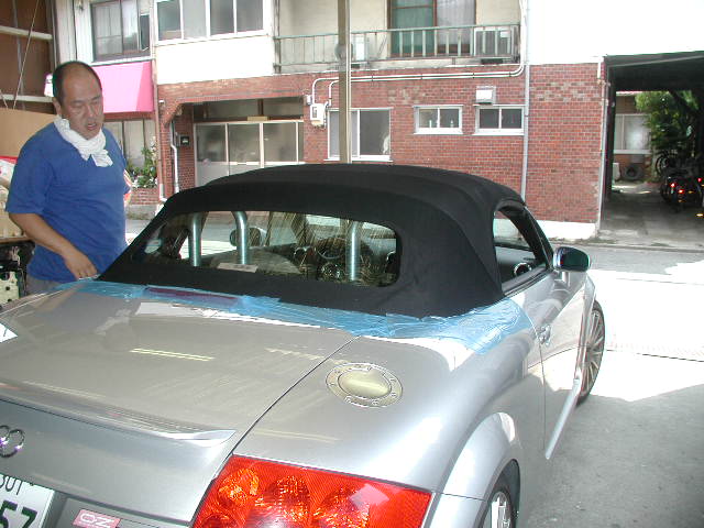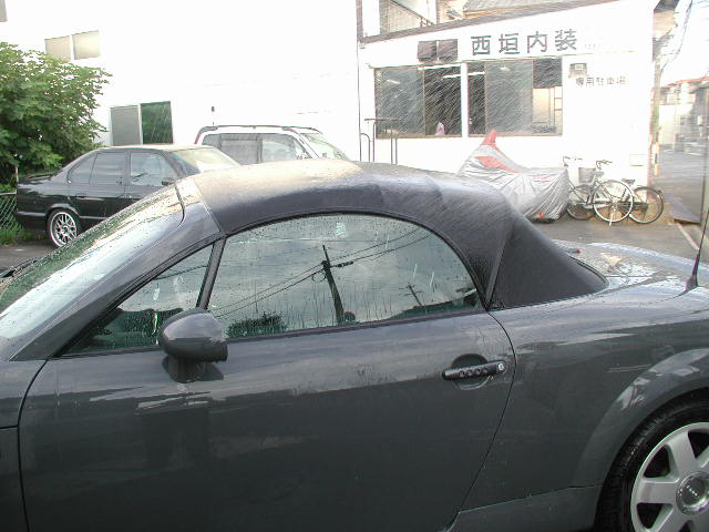 同時期に同じ状況の2台が入りました。幌はまだまだ使えるのにディーラーにいけば張替えになります、 金額は60万円ほどのことを言われます(もったいない)。こうして直して使えばまだまだ使えます。