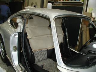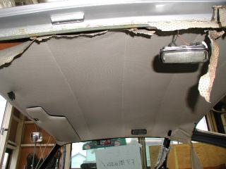 製作上で云われます、ツリ、天井の張替えです 現在の車種のようにボードに天井地を貼り付けた