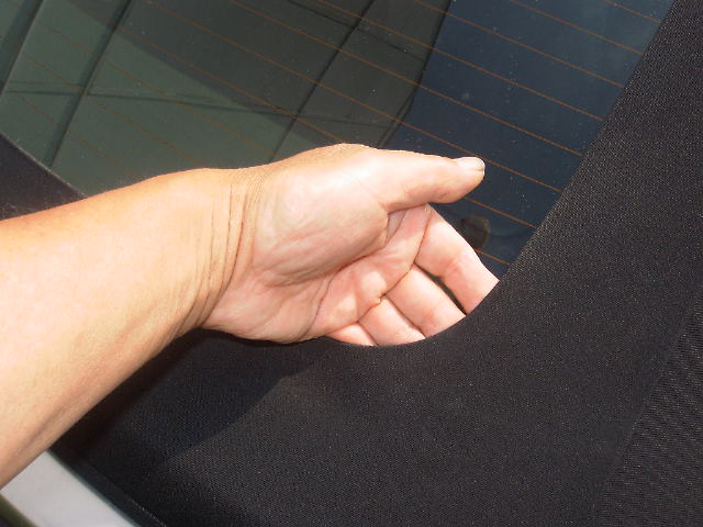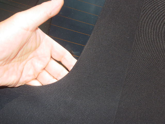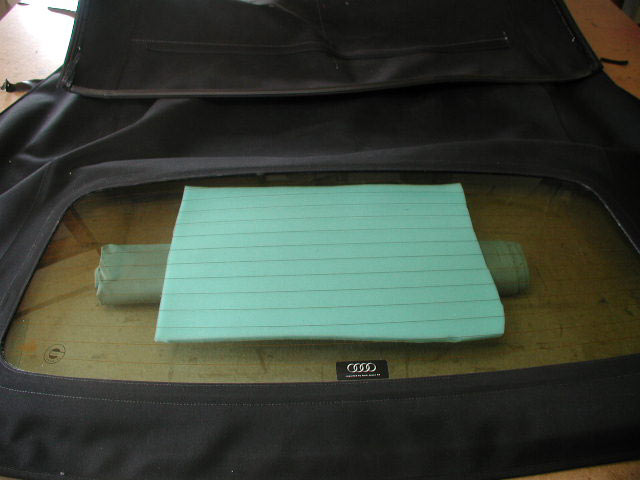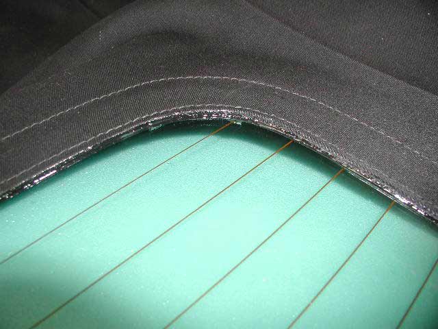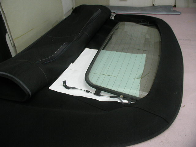 今回ガラスまわりのミシン目がダブルになっています、幌地が分離