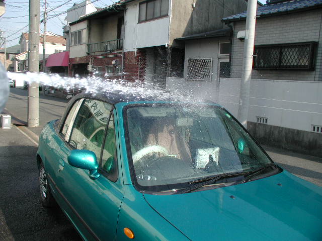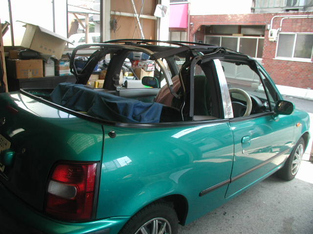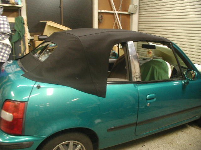 幌完成、雨漏りNG、直すこと4回、30分後にもう一度