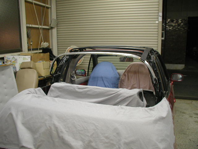 はるばる東京からお越しくださいました、マーチ幌の張替え