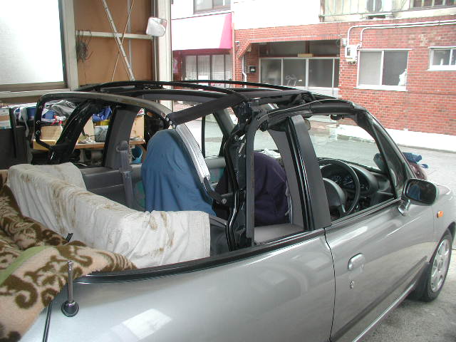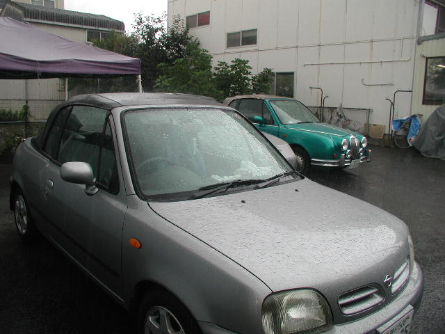 この雨は雨漏り検査に絶好のチャンス、これで大丈夫なら?? サイドゴムつなぎ目2番目から背もたれの上に・・