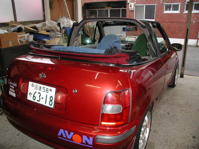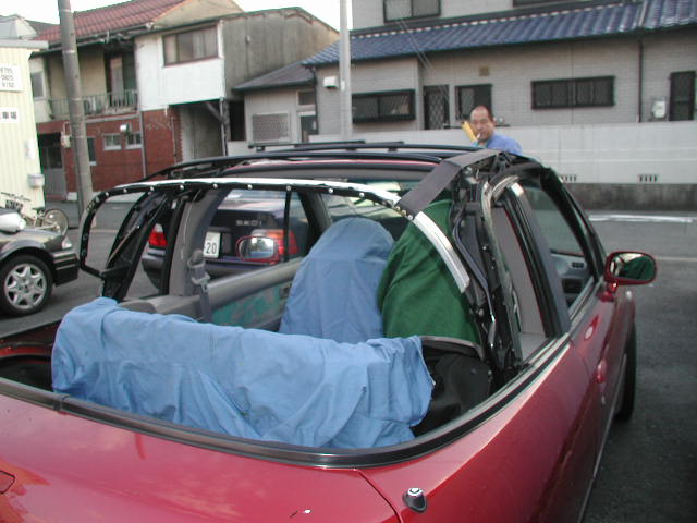 古い幌をはず時随分雨漏り止めのゴムのリガ入ってました、幌が出来上がり雨漏り検査を