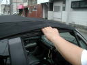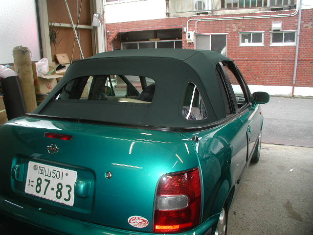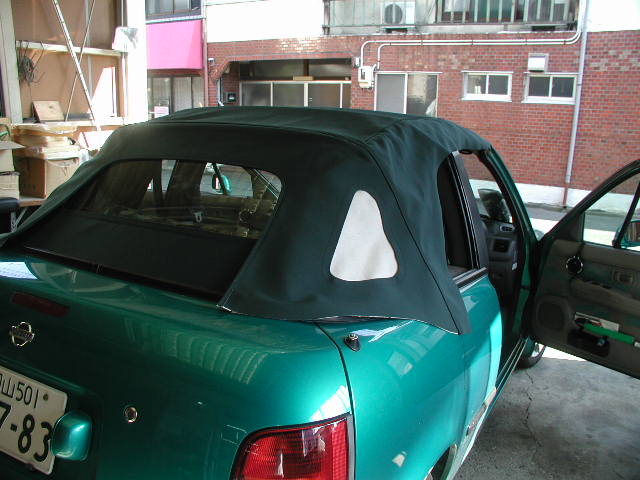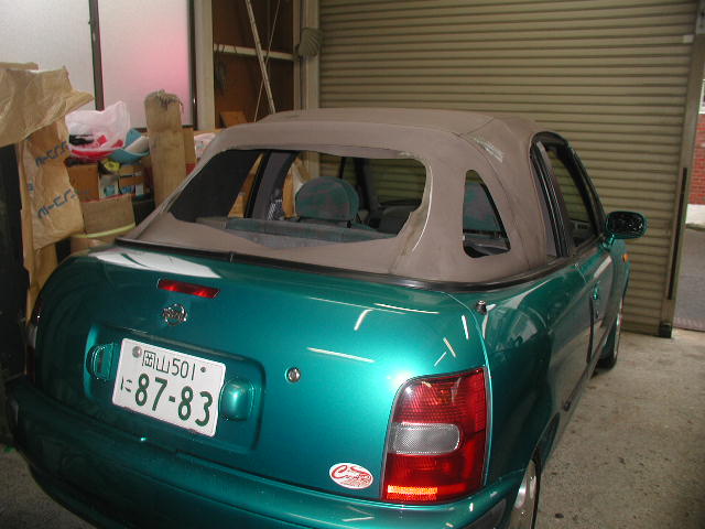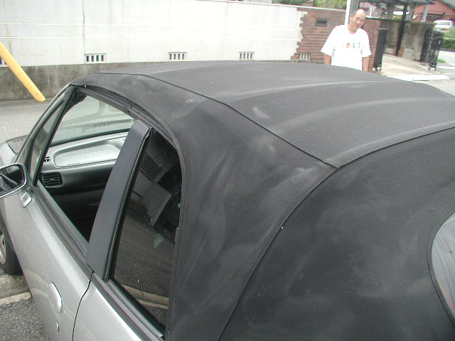 | マーチ1号車 4年前になります。Hさんの話では開閉は2000回はらくに超えてるそうです。ワイヤーも切れ ています、一番気になっていましたガラスはまだまだ大丈夫みたいでした あっちコッチ穴が開いてる幌がかわ いそう。このような状況を見させて頂くのは非常に参考になり今後の課題として学させていただきました。 |