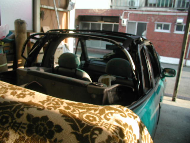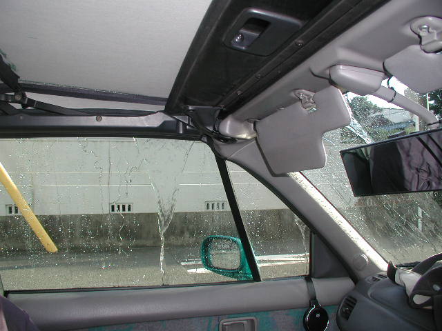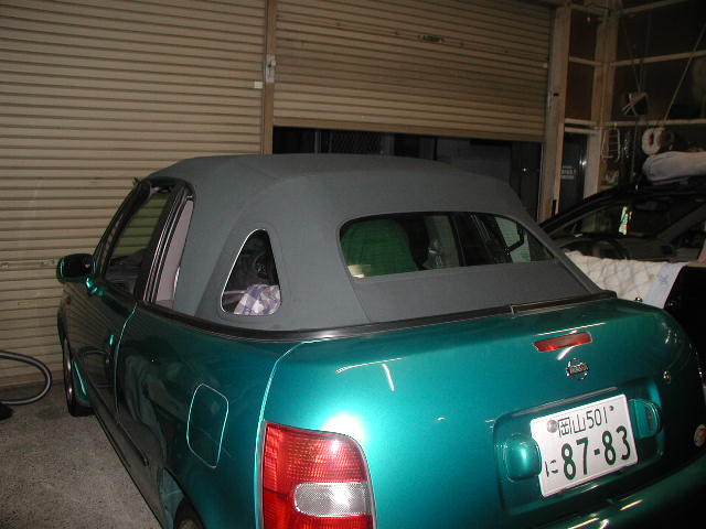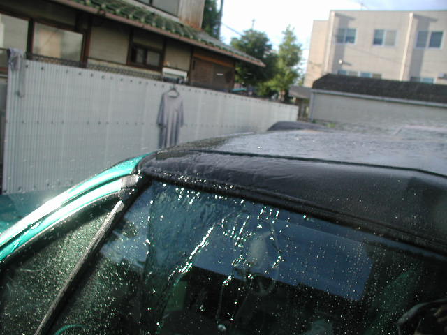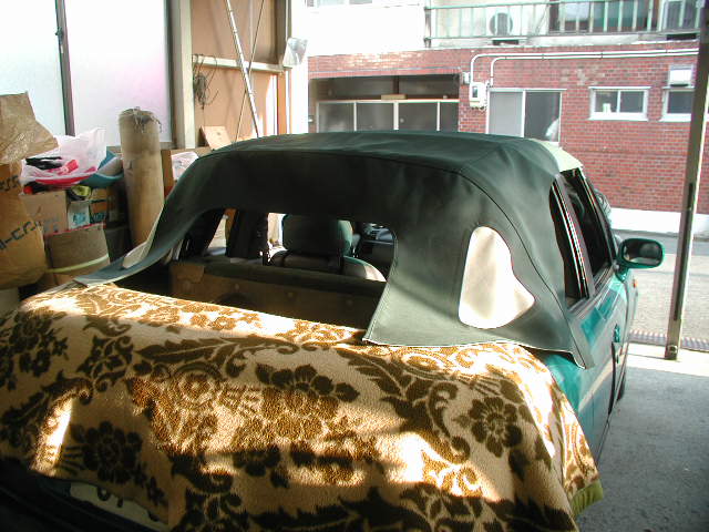 左側より30秒に1滴くらいの 割で雨漏り発生、幌からでは なくドアーの当りゴムから、修 理して直りましたが明日もう一 度検査してみます 検査の結果OKでした。 全て完成 |