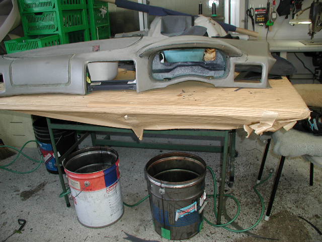ちじんだ皮をはがし凸凹を平らにし型をとって張り替えます こちらはフェラーリです